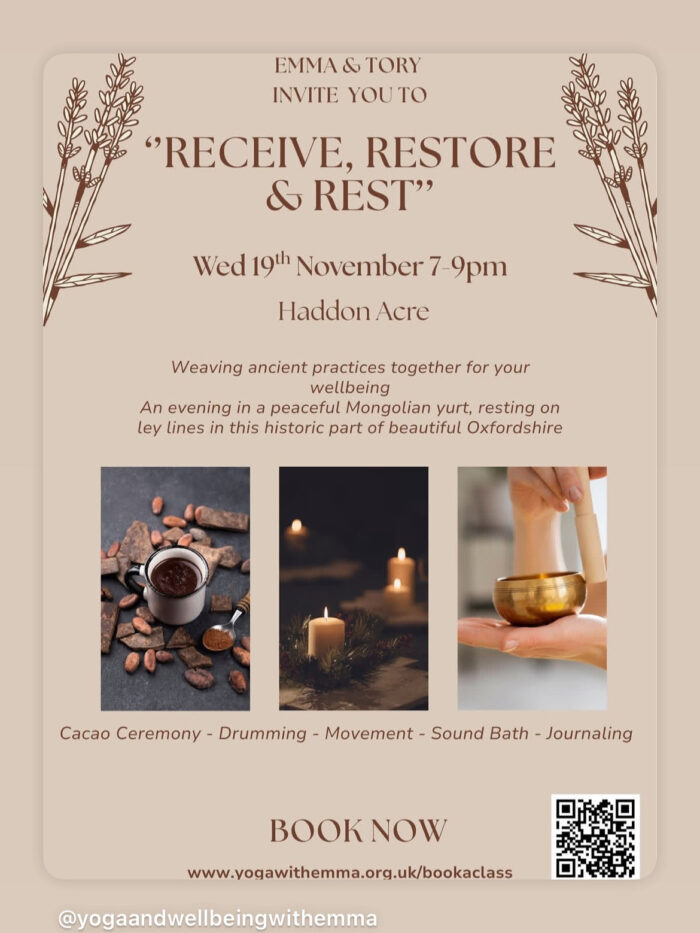 Our event at Haddon Acre will start around the fire with cacao and drumming before we venture into an amazing traditional yurt for gentle movement and a deeply relaxing and healing sound bath.